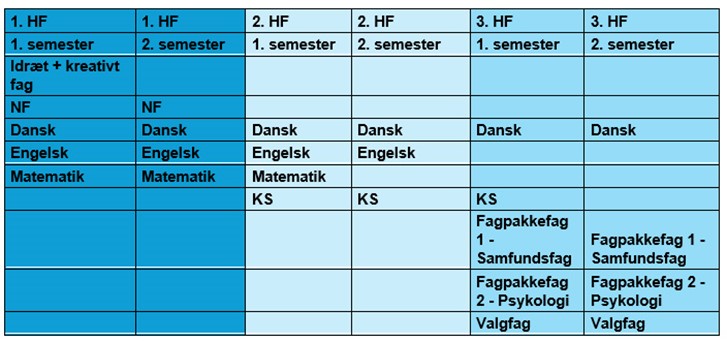- Fagpakkefagene samfundsfag på B-niveau og psykologi på C-niveau.